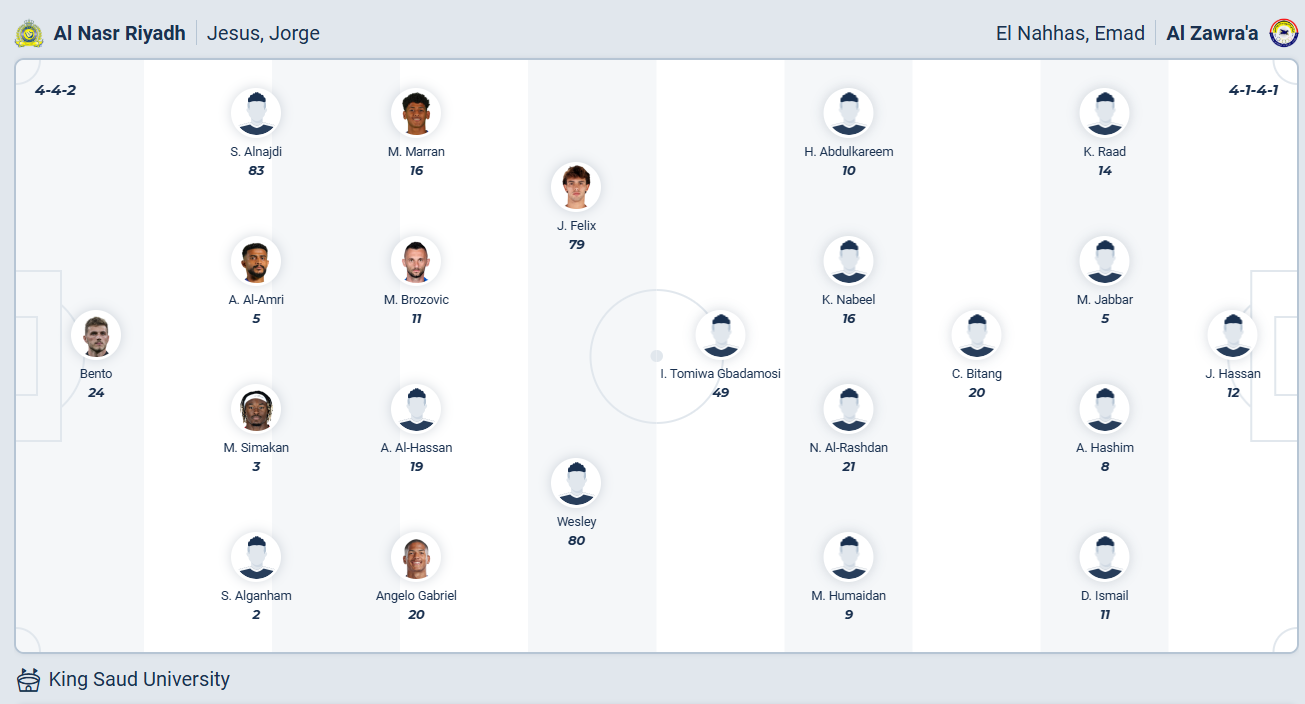 Al Nassr vẫn có ngôi sao Cristiano Ronaldo trong đội hình. Họ vẫn chưa giành được danh hiệu nào kể từ khi cầu thủ người Bồ Đào Nha gia nhập nên rất quyết tâm làm được điều gì đó đặc biệt ở mùa bóng năm nay. Mọi thứ đang diễn ra rất thuận lợi với đội bóng của HLV Jorge Jesus khi họ toàn thắng cả 9 vòng đấu đầu tiên của giải vô địch Saudi Arabia. Tại Champions League các cầu thủ Al Nassr cũng thể hiện sức mạnh vượt trội khi toàn thắng cả 5 trận đã đấu và sớm đứng đầu bảng. Ở lượt trận cuối cùng này đương nhiên Al Nassr muốn tiếp tục giành chiến thắng để khẳng định vị thế vượt trội của mình, nhiều khả năng họ sẽ không gặp nhiều khó khăn để có thêm một chiến thắng nữa trước Al Zawraa.