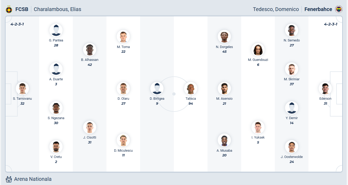FCSB là đội bóng của Romania, họ vô địch quốc gia mùa trước nhưng khi ra đấu trường châu Âu thì đội bóng này chưa có bất kỳ dấu ấn gì đáng kể. Việc lọt vào vòng League Phase của Europa League cũng có thể coi là chấp nhận được với thầy trò HLV Elias Charalambous, họ muốn giành vé đi tiếp nhưng với 6 điểm hiện có cùng vị trí thứ 29 thì hy vọng đó vô cùng mong manh. FCSB buộc phải thắng trận đấu cuối cùng của mình thì mới có hy vọng lọt vào top 24, nhưng trước đối thủ mạnh như Fenerbahce thì xem ra cơ hội có điểm không cao, nhiều khả năng đội chủ nhà sẽ để thua trận này.